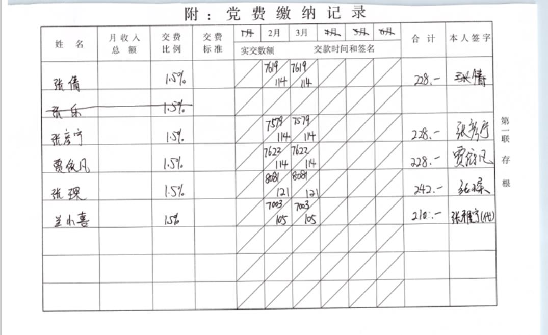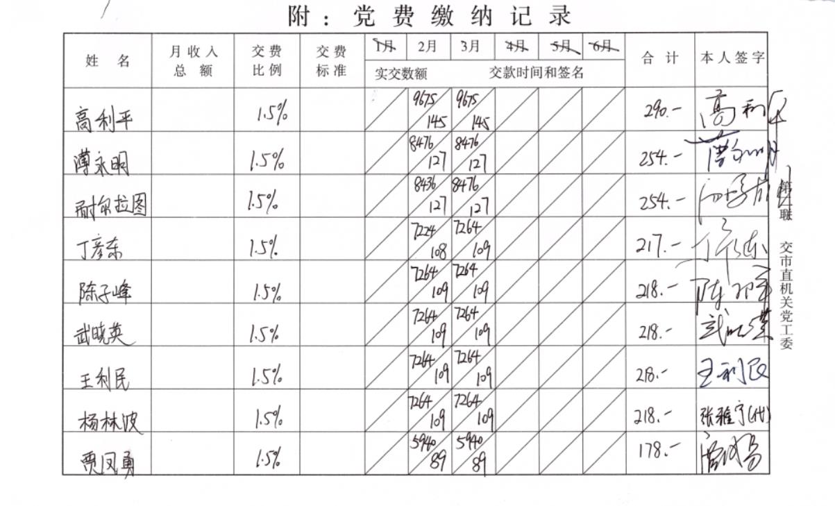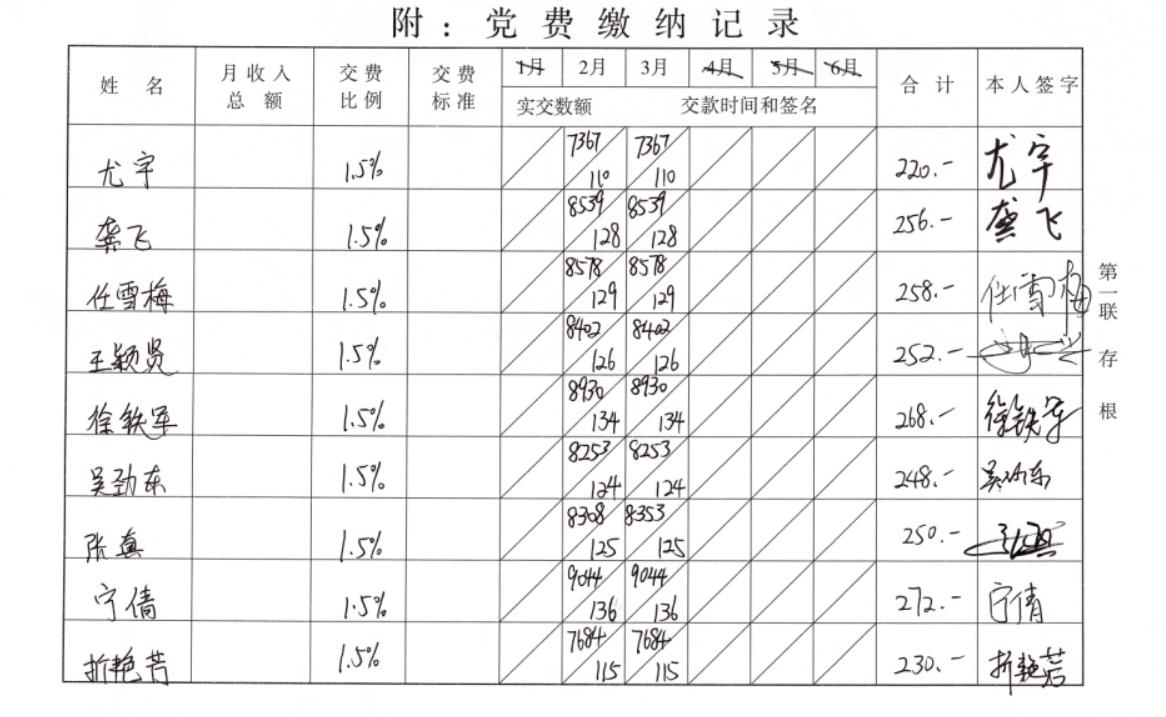 黨費(fèi)繳納記錄表